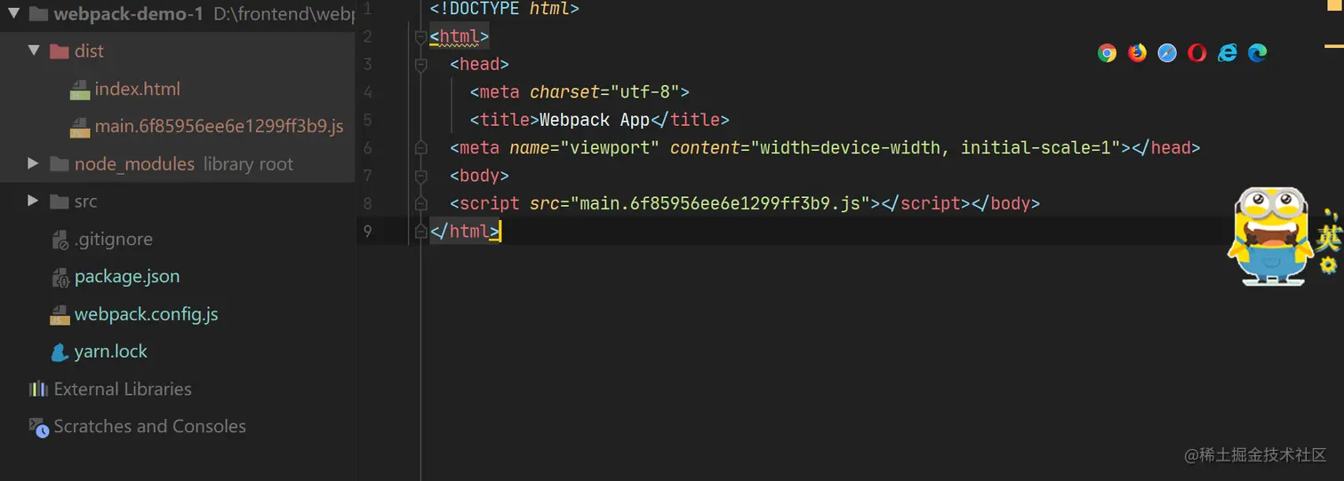 以上代码是说按照 "src/assets/index.html" 为模板,title为MY APP生成一个网页