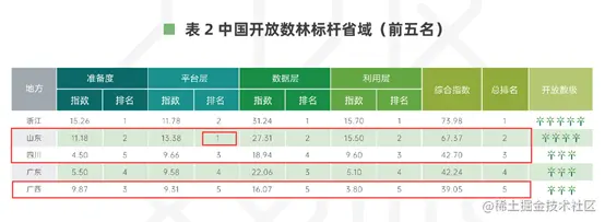 7月22日,复旦大学联合国家信息中心数字中国研究院发布了“2021上半年中国开放数林指数——省域标杆”暨《中国地方政府数据开放报告:指标体系与省域标杆》。根据《报告》,在参评的18个省域中,**浙江、山东、四川、广东、广西五省获得标杆省域,**以供其他省域对标借鉴。其中,山东、四川、广西三个省域的开放平台由浪潮承建,特别是山东平台层获得第一名。