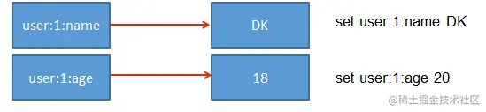 | hmset user:2 name Dk age 23 sex boy | 批量设值 |