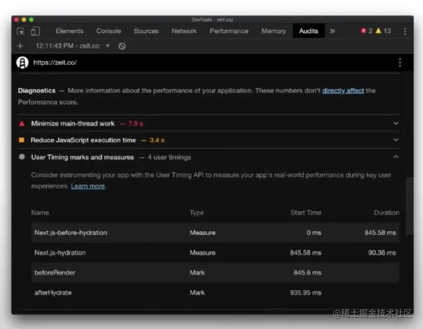 Chrome团队基于SSR这一场景,为Next.js定制了一系列Timing API。