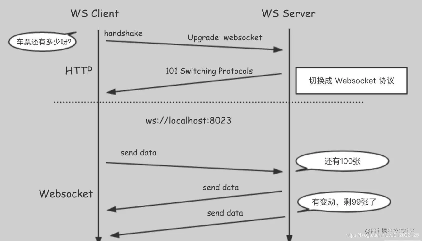 2、websocket协议是持久连接,连接建立后当服务器有数据更新时直接返回更新后的数据给客户端(浏览器),不需要客户端来询问是否有数据更新。