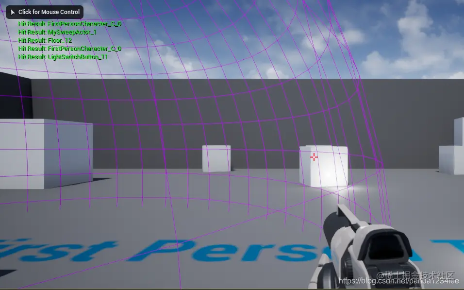 你可以在这里了解更多关于 SweepMultiByChannel 功能。如果 isHit 为真,我们将循环遍历 TArray 并打印出 击中 actor 的名字和其他相关信息。