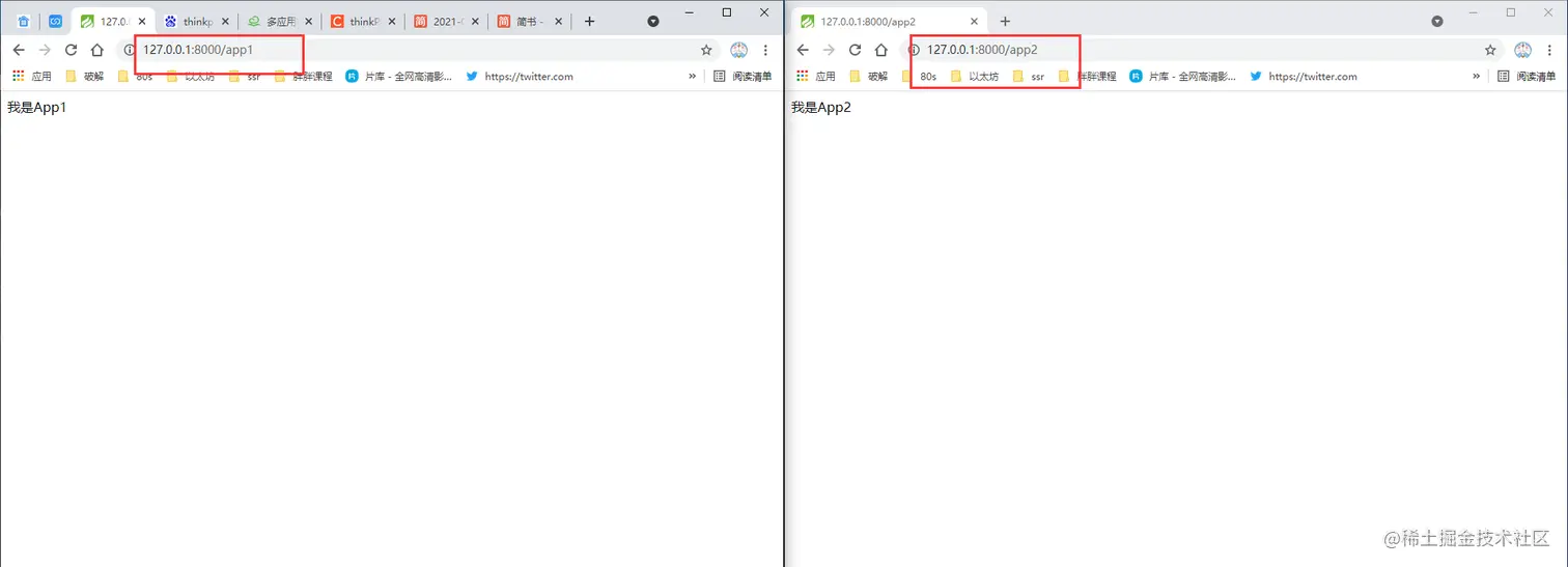 2、分别访问http://127.0.0.1:8000/app1、http://127.0.0.1:8000/app2