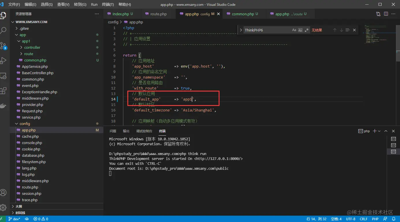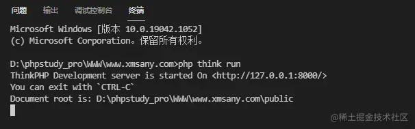 修改完后验证下,控制台输入 php think run 运行一下(根据个人情况运行,有的人是直接放nginx的)