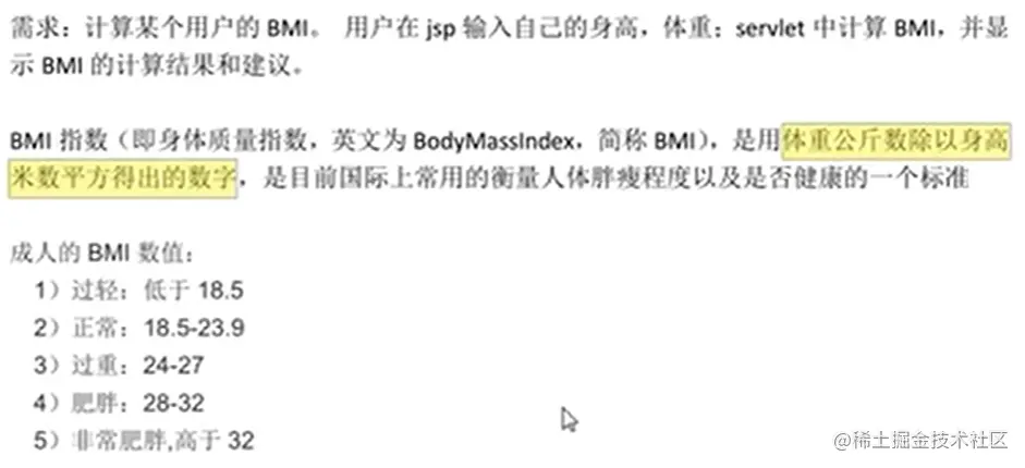 - 项目介绍:通过用户输入的信息,计算这个人的bmi,判断bmi的数值在哪个区间,返回测试结果给用户。