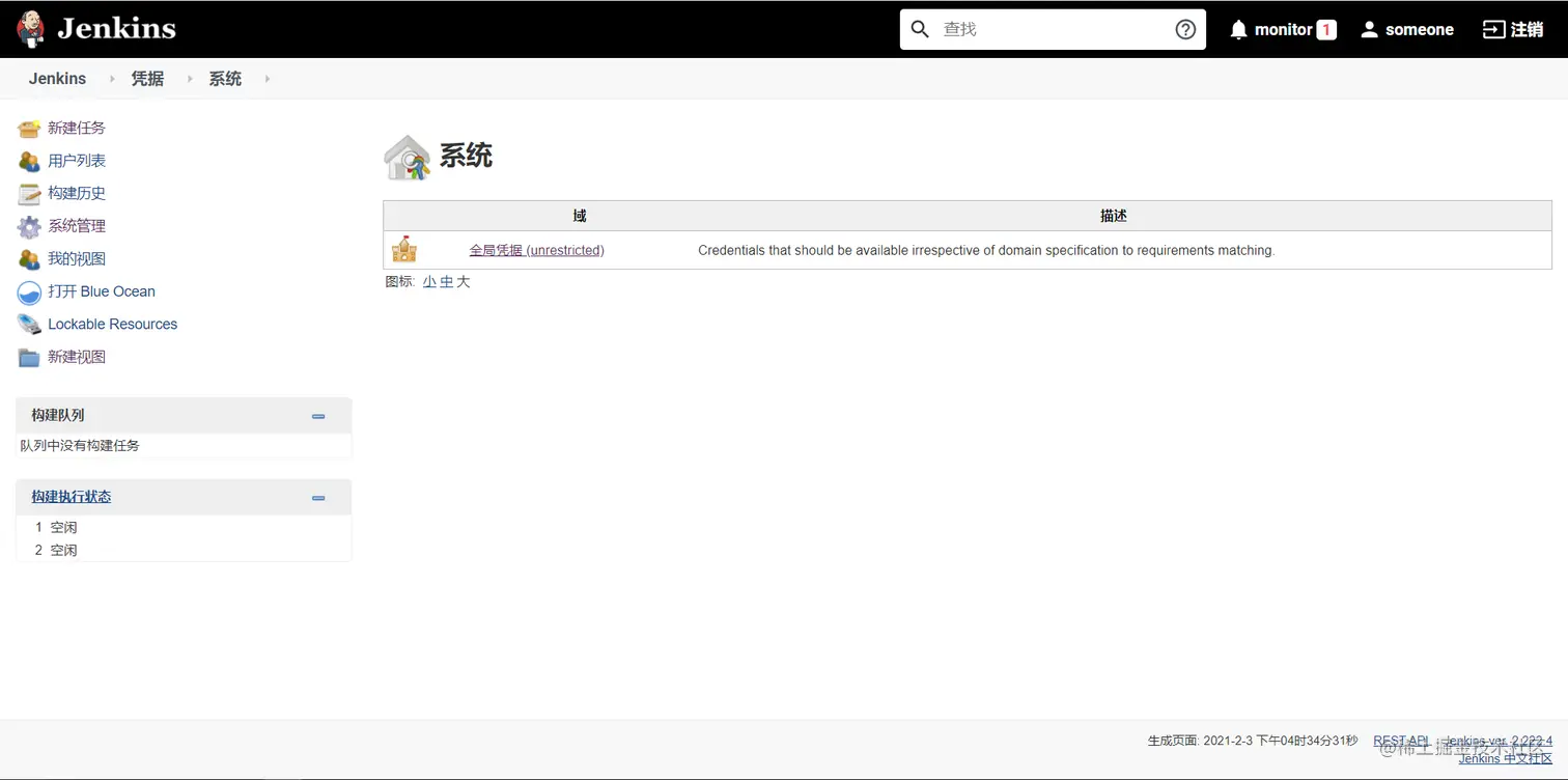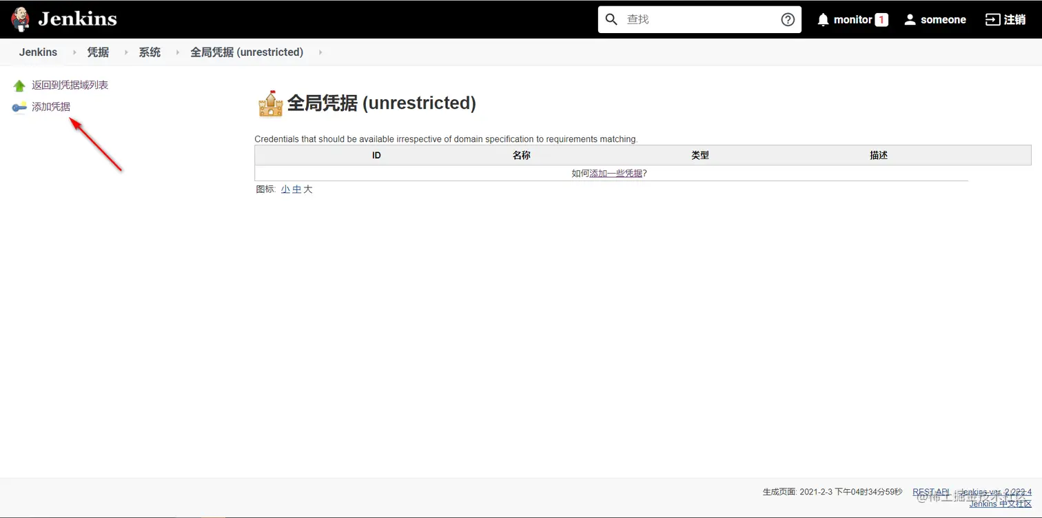 去到 Jenkins 的【系统管理】→ 【Manage Credentials】下: