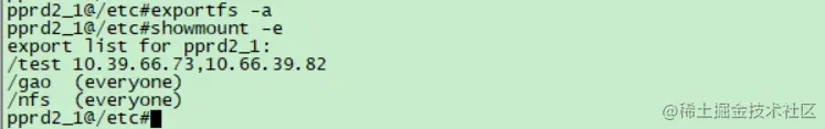 4、使用“showmount -e”查看是否成功,我这里nfs配置的是everyone,在实际生产中不安全,大家在生产环境中按照实际情况去配置。