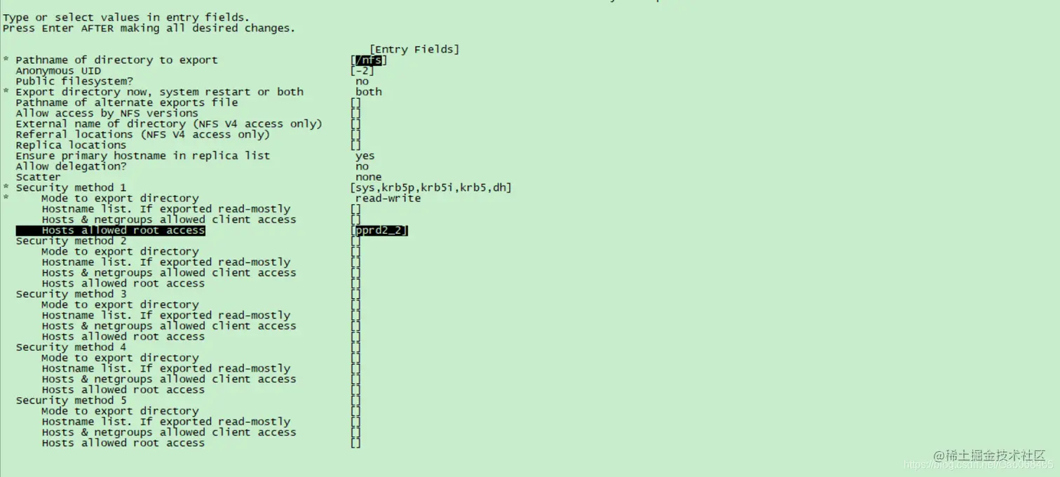 2、使用命令“smitty mknfsexp” 设置NFS服务器端导出目录