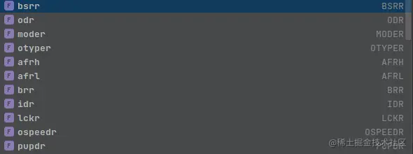 这个打印出的寄存器块的地址和**"bsrr "寄存器的地址将在一个连续的内存中,即0x48001018**。