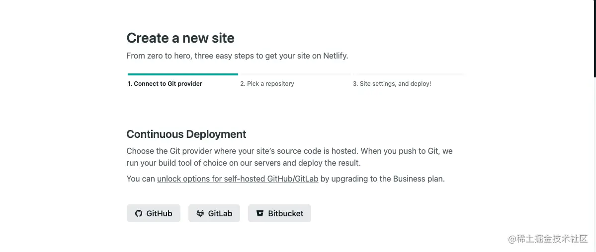 点击新建一个 site 来自 Git,之后跟着步骤往下做。点击左下角的 Github,之后选择刚才我们创建的那个仓库(zss)。