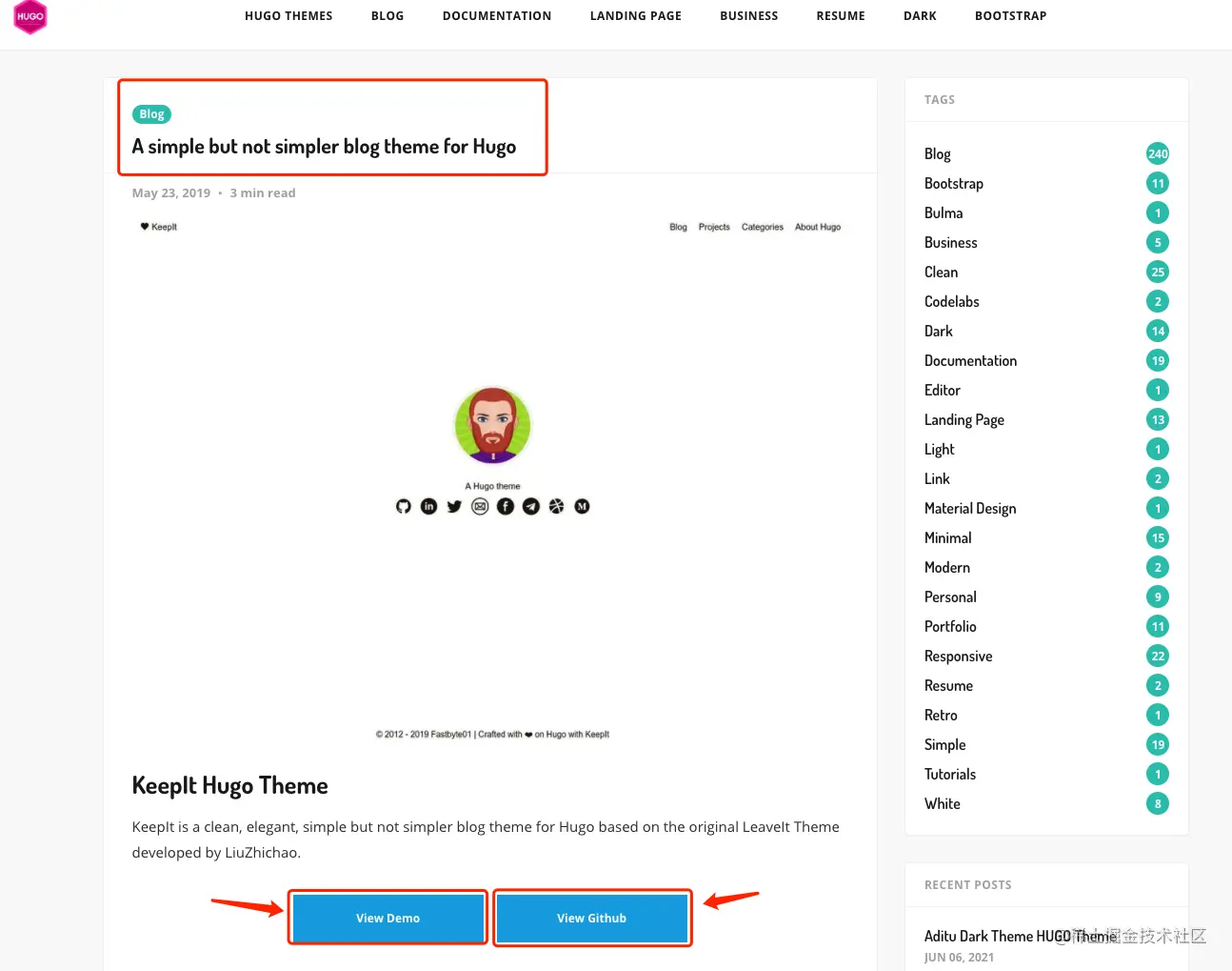 小编刚使用的是:A simple but not simpler blog theme for Hugo,进入之后的界面如下,然后点击View Github进入对应的仓库。
