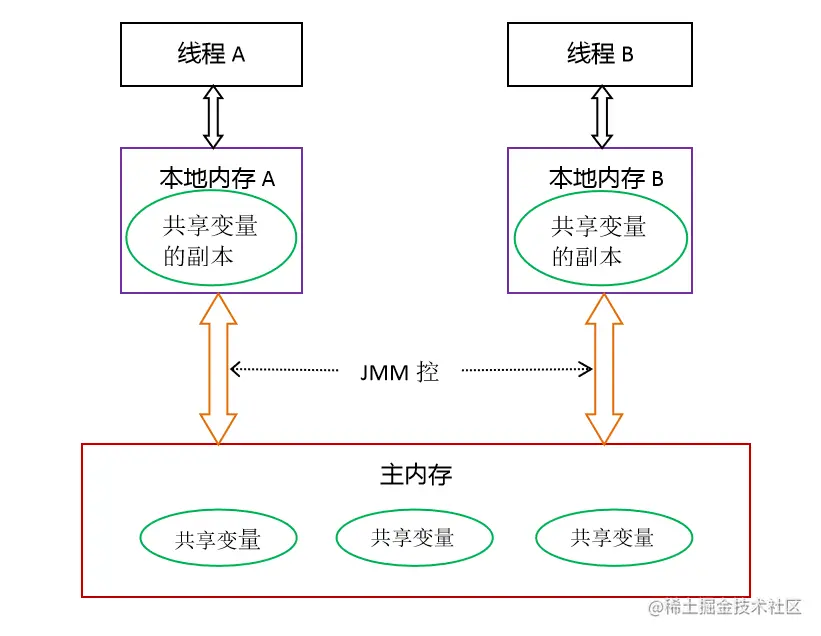 JMM(java memory model)java内存模型,它并没有实际的体现,它是一个规则,都知道ava是跨平台语言,在个操作系统中内存都有一定的差异性,每个系统的并发不一致,JMM的作用就是用来屏蔽掉不同操作系统中的内存差异性来保持并发的一致性。同时JMM也规范了JVM如何与计算机内存进行交互。JMM就是Java自己的一套协议来屏蔽掉各种硬件和操作系统的内存访问差异,实现平台一致性达到最终的"一次编写,到处运行"