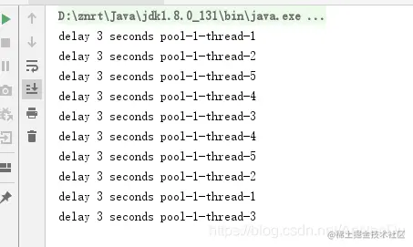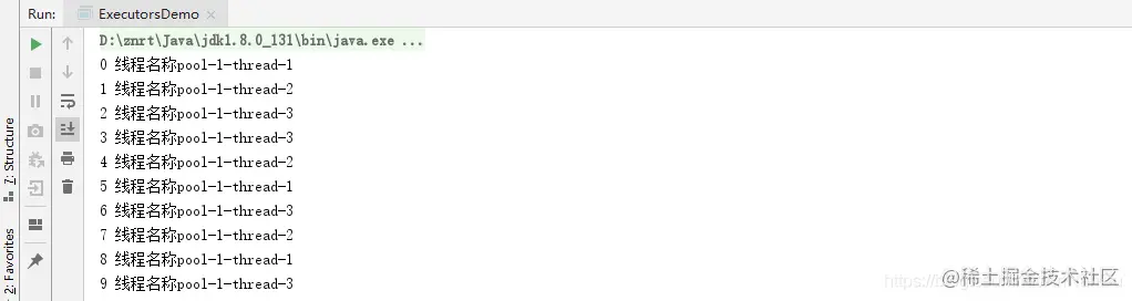 我们给定长线程池设置了3个线程,就一直是这三个线程在跑