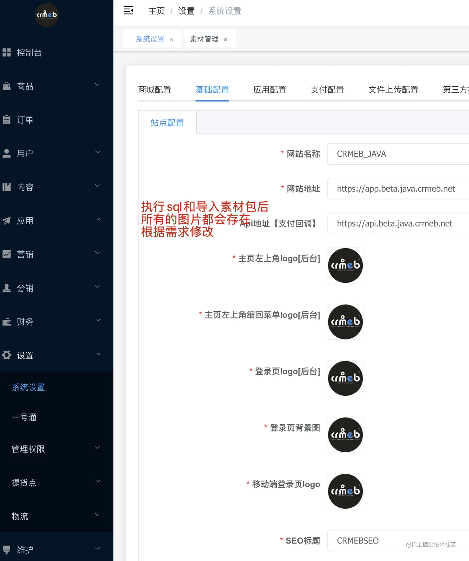 2:执行sql SQL中包涵基础设置的eb_system_config表和组合数据eb_system_group_data表