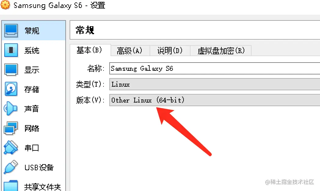 将Virtualbox设置常规选项中的版本重新选择Ohter Linux-64位