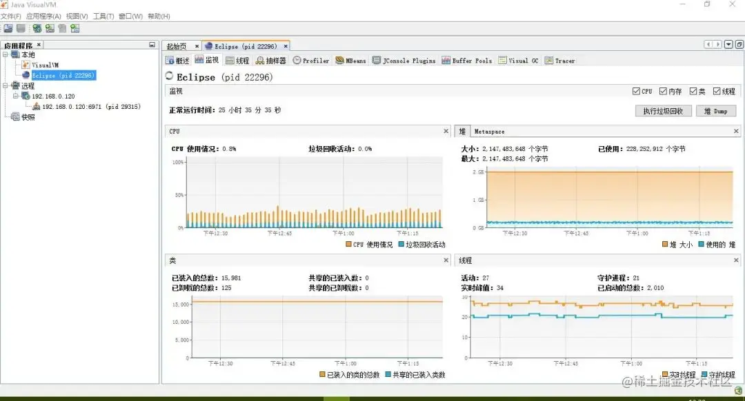 因为VisualVM的插件太多,我这里主要介绍三个我主要使用几个:监控、线程、Visual GC