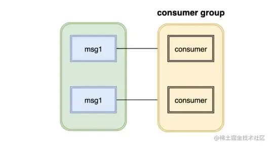 1.点对点:如果所有消费者属于同一个消费组,那么所有的消息都会被均匀的投递给每一个消费者,每条消息只会被其中一个消费者消费。