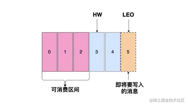 分区 ISR 集合中的每个副本都会维护自己的 LEO,而 ISR 集合中最小的LEO 即为分区的 HW