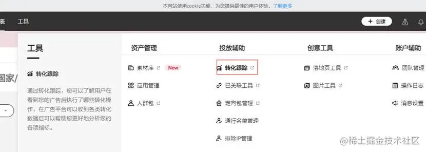 点击工具>转化跟踪