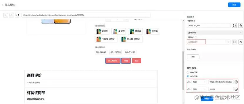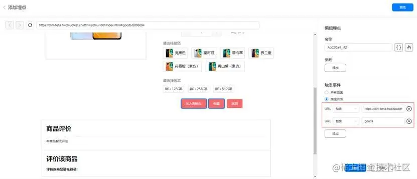 以华为商城为例,用户点击广告跳转到华为商城的某个商品详情页,需要在商品详情页跟踪点击加入购物车或者购买事件。