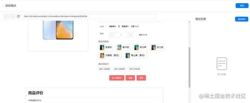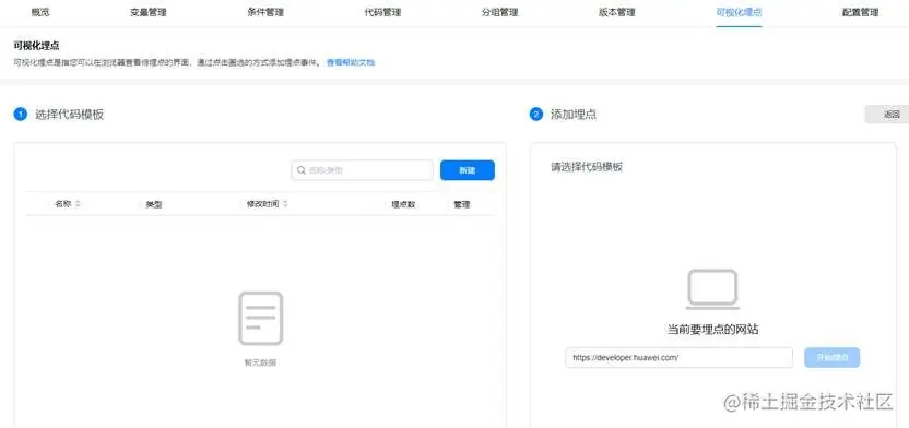 选择上一步创建的HUAWEI Ads模板,输入要埋点的网站地址,点击开始埋点后进入可视化埋点模式。