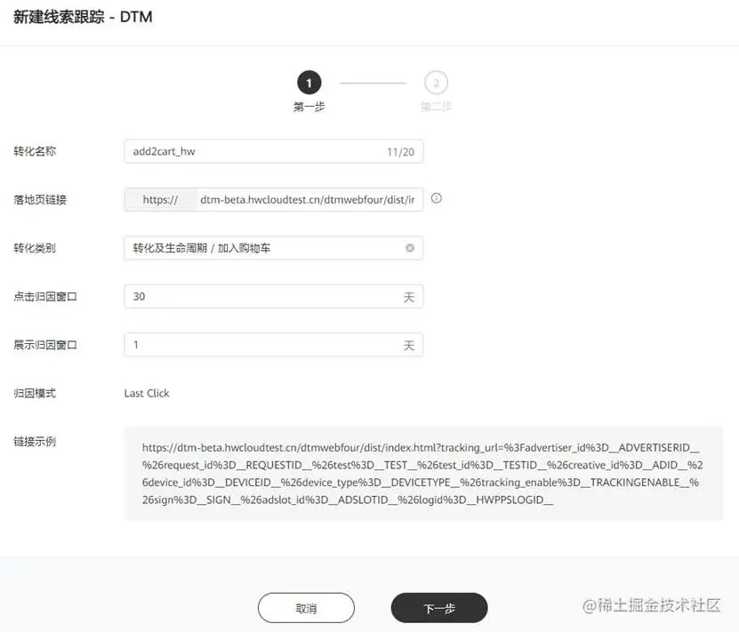 1. 在HUAWEI Ads平台创建网页跟踪