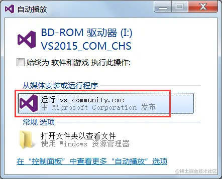 a.VS2015 下载完成后会得到一个镜像文件(.iso 文件),双击该文件即可开始安装,选择“运行 vs_community.exe”即可进入安装程序;