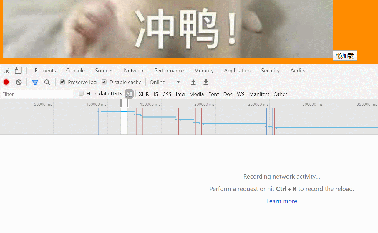 下面的图片记录了当我们点击 ‘懒加载’按钮之后 网络请求和控制台的变化