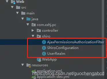 在这里面,Web模块配置shiro,主要用到三个类,