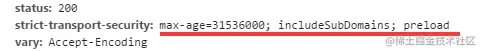 这个 HTTP 头信息在服务端显示为:Strict-Transport-Security,它包含强制性的信息 max-age,也包含了可选参数 includeSubDomains 和 preload 方便配置: