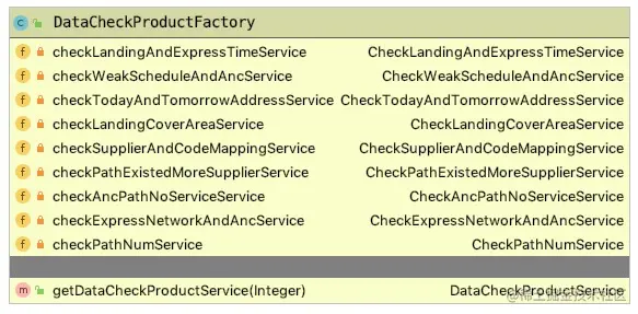 - DataCheckProductFatory:由getDataCheckProductService方法根据输入参数决策使用哪个数据检查工具。