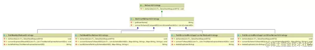 此外,还有一种场景也可以使用策略模式,那就是业务系统中有很多业务网络,不同网络之间有一些差异;本次所实现的检查工具,有几个涉及到多个网络,今后可能会涉及到所有网络。
