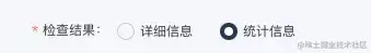 之所以会用到策略模式,是因为一些检查工具写完之后,发现跑出来的结果数据太多,有几万、几十万等等,一方面,检查比较耗时,结果文件会很大,下载耗时;另一方面,这么多数据给到业务同学,他们也很难处理和分析,也许他们只是想看一下总体情况,并不想看具体的到哪个地方的线路。为此,在原先方案设计的基础上,增加了“统计信息”的选项,让用户可以自行选择“详细信息”还是“统计信息”,对应到页面上就是一个单选框,如下: