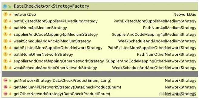 - DataCheckNetworkStrategyFactory:用于决策使用哪种网络处理策略,因为将策略分为了2类(4PL网络和其他网络),所以需要传入两个参数才能决定使用哪种策略。