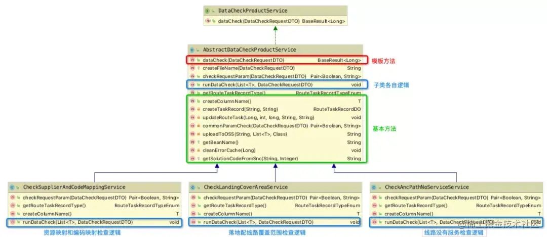 dataCheck方法为模板方法,runDataCheck方法由各个子类去实现,其他方法是基本方法。还有一些其他方法,是各个检查工具都需要使用的,所以就放在了父类中。