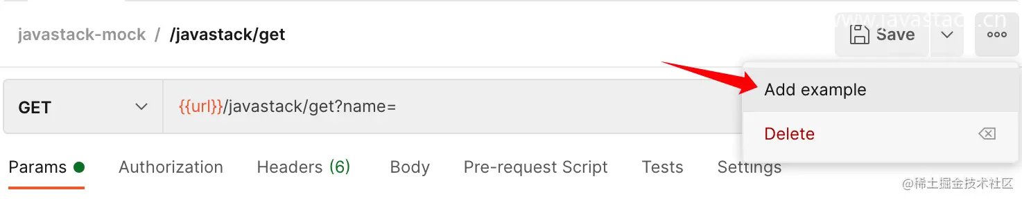 实际测试过程中,默认的示例响应数据可能不能满足要求,可以再新增自定义示例,根据增加请求参数来判断走哪个示例,如现在添加一个示例: