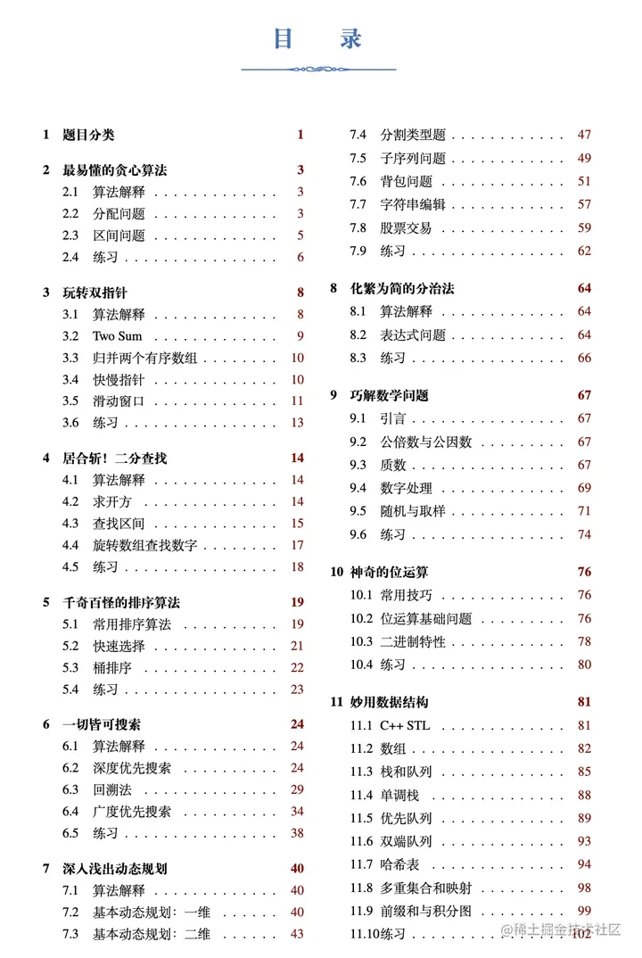 小编只展示了一部分内容,有需要这份刷题笔记的朋友可以 点赞此文后点击此处凭截图免费获取 话不多说,让我们来看一下书的目录: