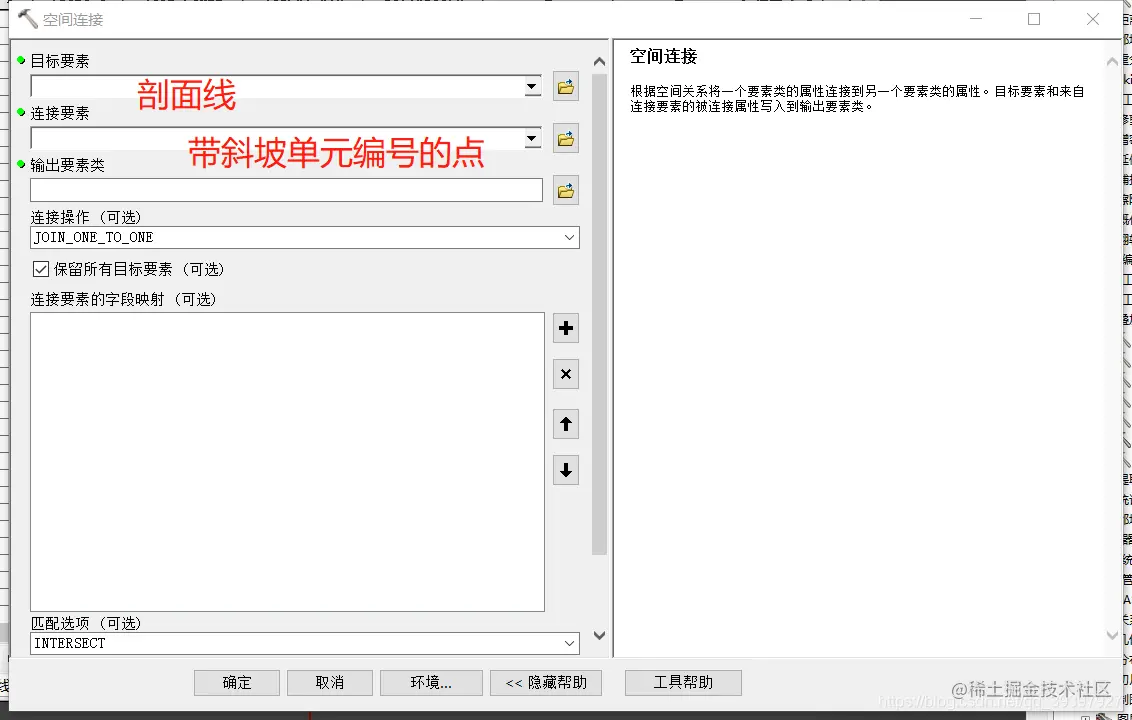 由于创建完的剖面线不带有野外编号,所以我们需要进行空间连接,因为斜坡单元转点后的数据是具有编号,所以进行空间连接将斜坡编号赋值给剖面线