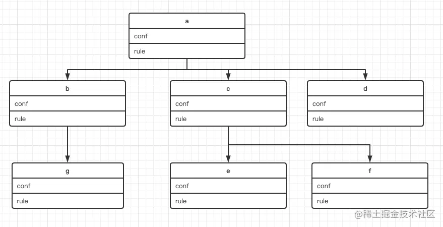 为了生成合法、有效的 script 函数,ManagerAPI 选择了 DAG 有向无环图的数据结构进行底层设计,并自主研发了 dag-to-lua 项目(GitHub:github.com/api7/dag-to…):它将根节点作为开始节点,根据判断条件决定下一个流转插件,这将有效避免逻辑死循环。如下为 DAG 数据结构的示意图: