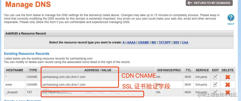 把之前配置的 NameSilo 的解析记录: