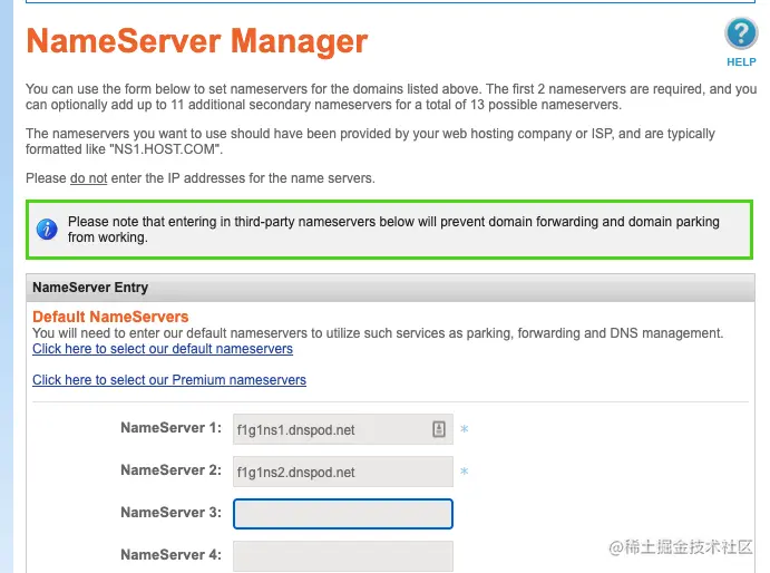 现在我们已经有了 NameSilo 和腾讯云 DNS Pod 两套解析规则了,那怎么才能将域名和 DNS Pod 绑定呢?答案是 Name Server。