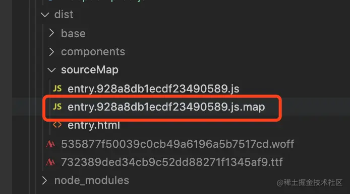 在文件最后还增加了.map文件的引用(线上该位置应该是一个完整的地址)。去构建目录中观察发现对应的.map文件时已经生成。