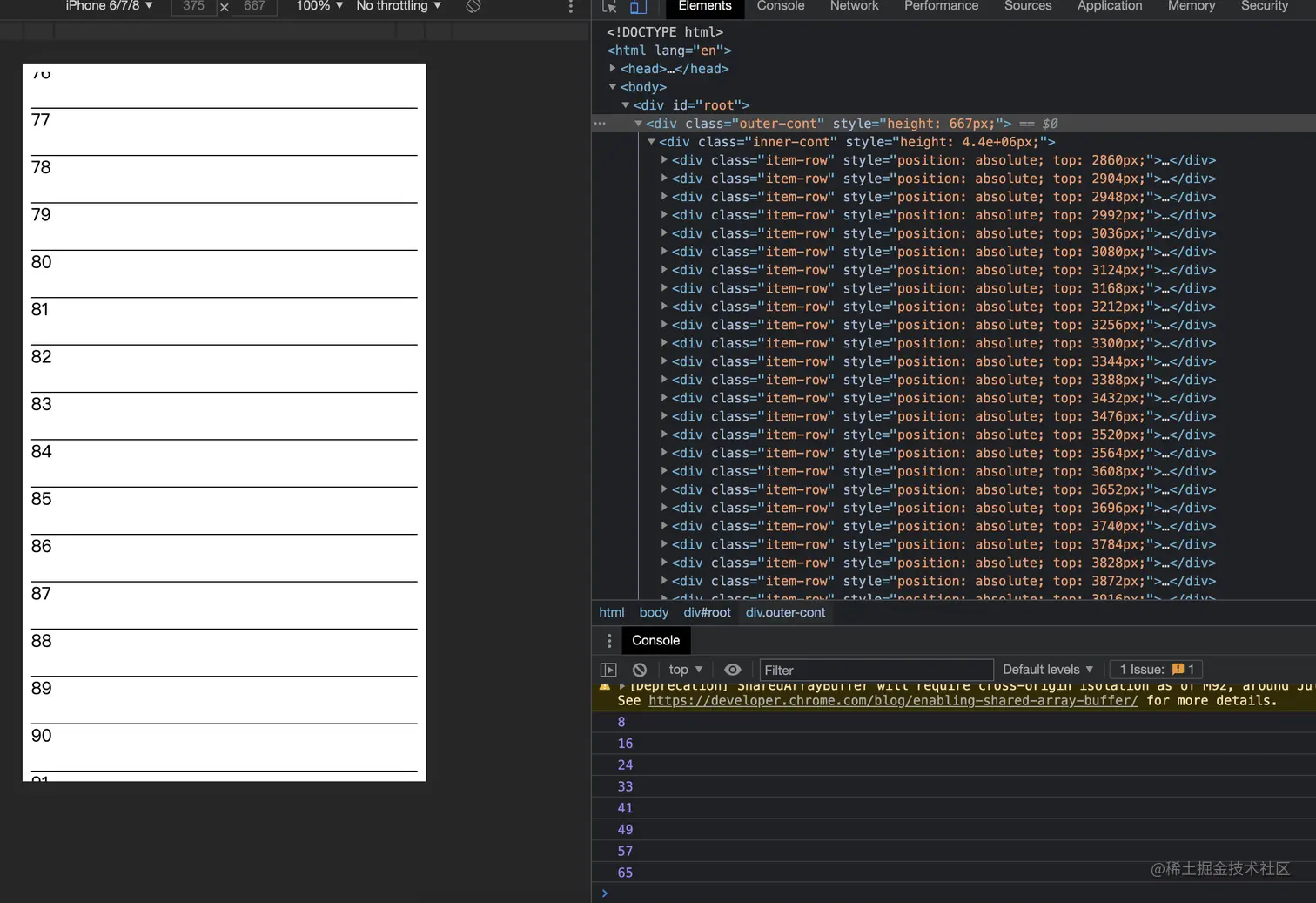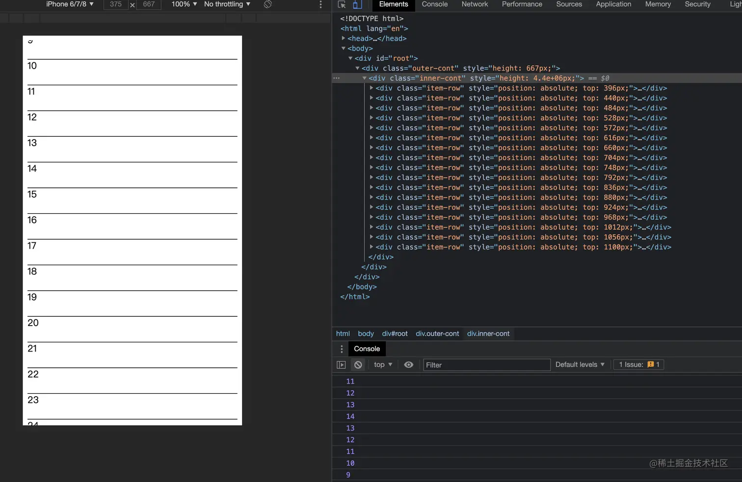 所以长列表性能优化是很常见的问题,我们项目组件库用的antd-mobile,所以首先想的是用antd-mobile的ListView,但是antd mobile的解决方案是先加载可视区域的数据,向下滑动时再加载下一部分数据,之前的渲染的元素不会清除。这样如果数据量特别大的话,页面上dom元素会很多,也会影响性能。