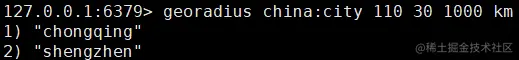 geoadd china:city 106.50 29.53 chongqing 114.05 22.52 shenzhen 116.38 39.90 beijing