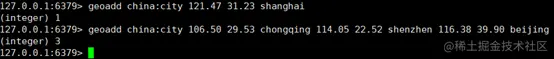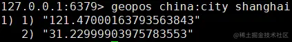 geoadd china:city 121.47 31.23 shanghai