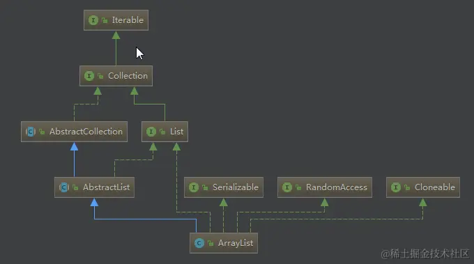 ArrayList是一个数组队列,相当于动态数组。与Java中的数组相比,它的容量能动态增长。它的继承关系如图所示: