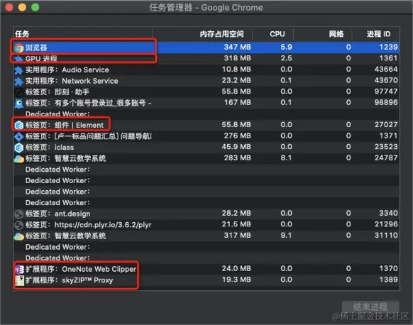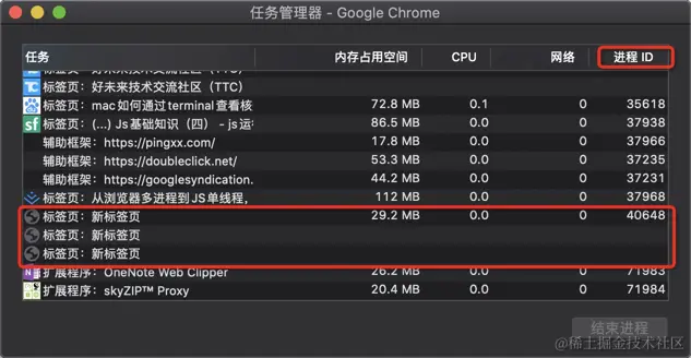 chrome => 窗口 => 任务管理器