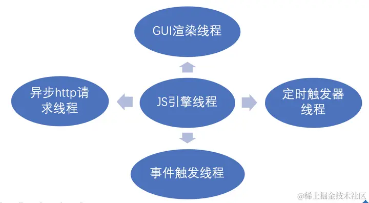 js引擎线程就是js内核,负责解析与执行js代码,也称为主线程。一个Tab页(renderer进程)中无论什么时候都只有一个JS线程在运行JS程序(所以也称为单线程)。需要注意的是,js引擎线程和GUI渲染线程同时只能有一个工作,js引擎线程会阻塞GUI渲染线程(互斥原则)