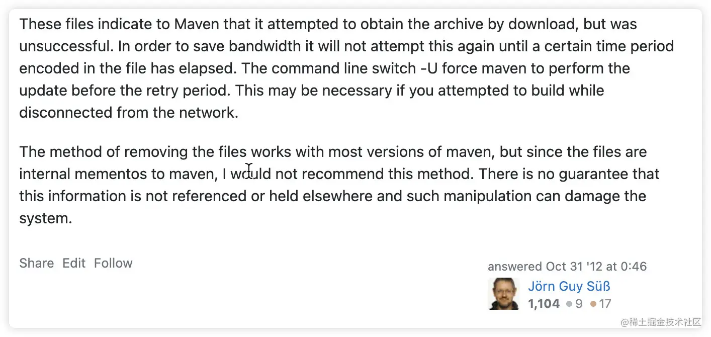 前两个问题主要跟本地网络有比较大的关系,那这个问题,主要是因为 maven 特性导致。