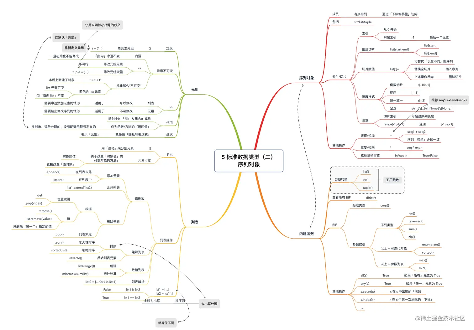 基础知识图三包含了︰集合、字典、标注数据类型、数据类型、一张基础知识导图可以帮助你区域化了解Python的组成部分及基本操作。
